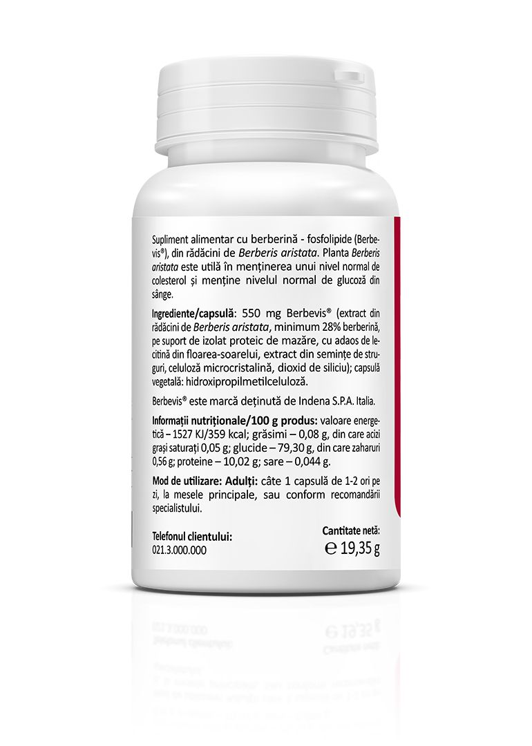Berbevis® este o formă inovatoare de berberină, rezultatul cercetării avansate în fitomedicină și al tehnologiei brevetate Phytosome® de la Indena. Obținută din rădăcinile plantei Berberis aristata, recunoscută de secole în medicina tradițională ayurvedică, această berberină este standardizată pentru a conține 28-34% berberină în formă liberă (analizată prin HPLC). Ceea ce diferențiază Berbevis® de formele convenționale este structura sa complexă, optimizată pentru absorbție superioară și tolerabilitate îmbunătățită.