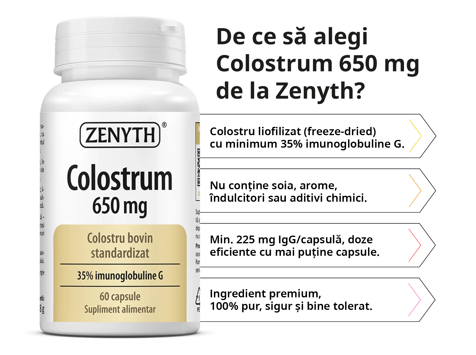 Alege Colostrum 650 mg de la Zenyth pentru imunitate activă, digestie sănătoasă și energie în fiecare zi!