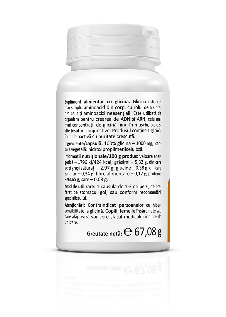 • Supliment alimentar cu 100% glicină, cu puritate ridicată.