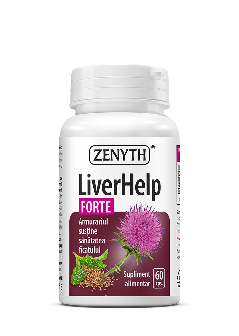 LiverHelp Forte conține cea mai cunoscută și studiată plantă cu acțiune benefică pentru sănătatea ficatului: armurariul. Substanța activă din armurariu – silimarina – conferă acestei plante proprietăți antifibrotice, hepatoprotectoare, antioxidante, regeneratoare și antiinflamatoare. De asemenea, silimarina contribuie la regenerarea țesutului hepatic prin stimularea producerii de hepatocite (celule hepatice) noi, care le înlocuiesc pe cele deteriorate. Silimarina are efect antiinflamator, acțiune antivirală (împotriva virusului hepatitei C). Reducerea rezistenței la insulină a organismului se numără, de asemenea, printre beneficiile silimarinei.