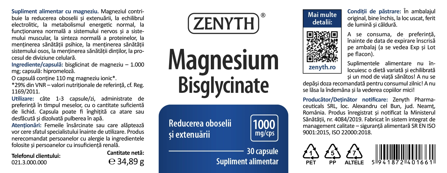 Magneziul bisglicinat de la Zenyth este minunat. Fata mea care este acum în sesiune de examene este foarte mulțumită și ea de efect. Recomand!