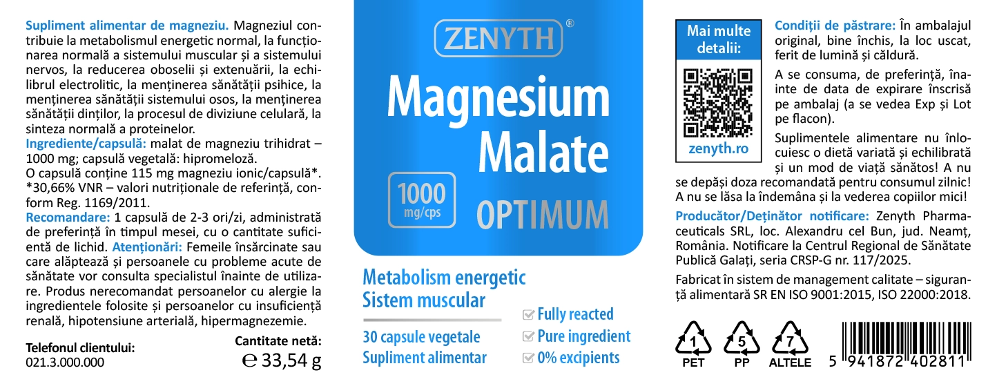 Astfel, acidul malic din Magneziu Malat Optimum optimizează absorbția magneziului și oferă un impact multiplu asupra energiei, funcției musculare, sistemului nervos și sănătății metabolice, transformând suplimentul într-un aliat complet pentru energie, echilibru, performanță fizică și stare de bine generală.