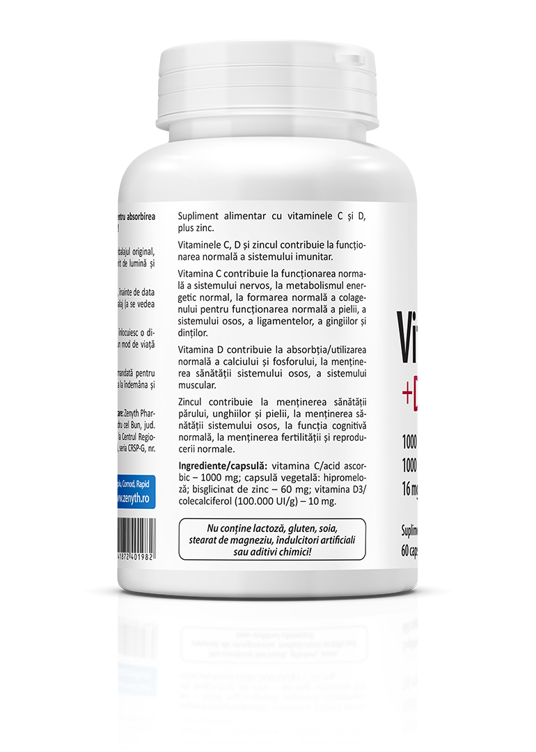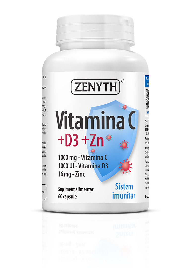 Vitamina C +D3 +Zn este un supliment alimentar recomandat pentru susținerea imunității în infecțiile virale respiratorii. Vitamina C, vitamina D3 și zincul acționează sinergic pentru creșterea rezistenței organismului la infecțiile de tract respirator superior.